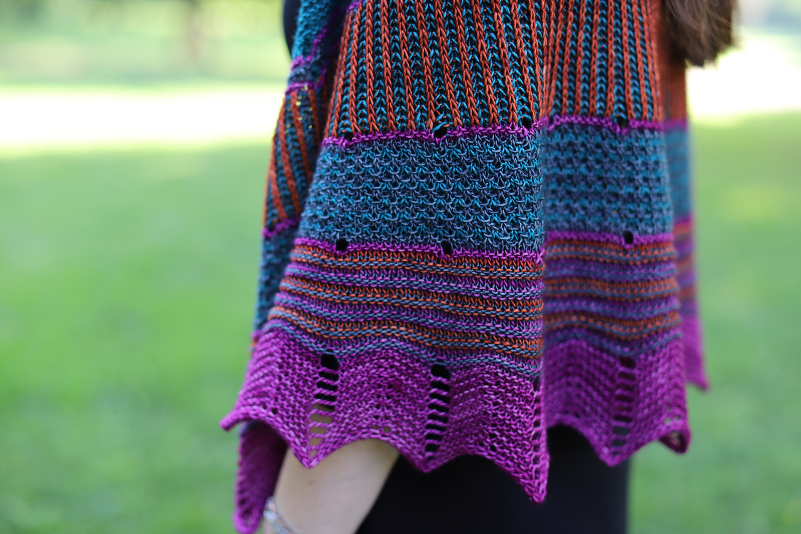Malabrigo Mechita Teal Feather, Holly Hock, Dried Orange a Martin´s Lab Thunder